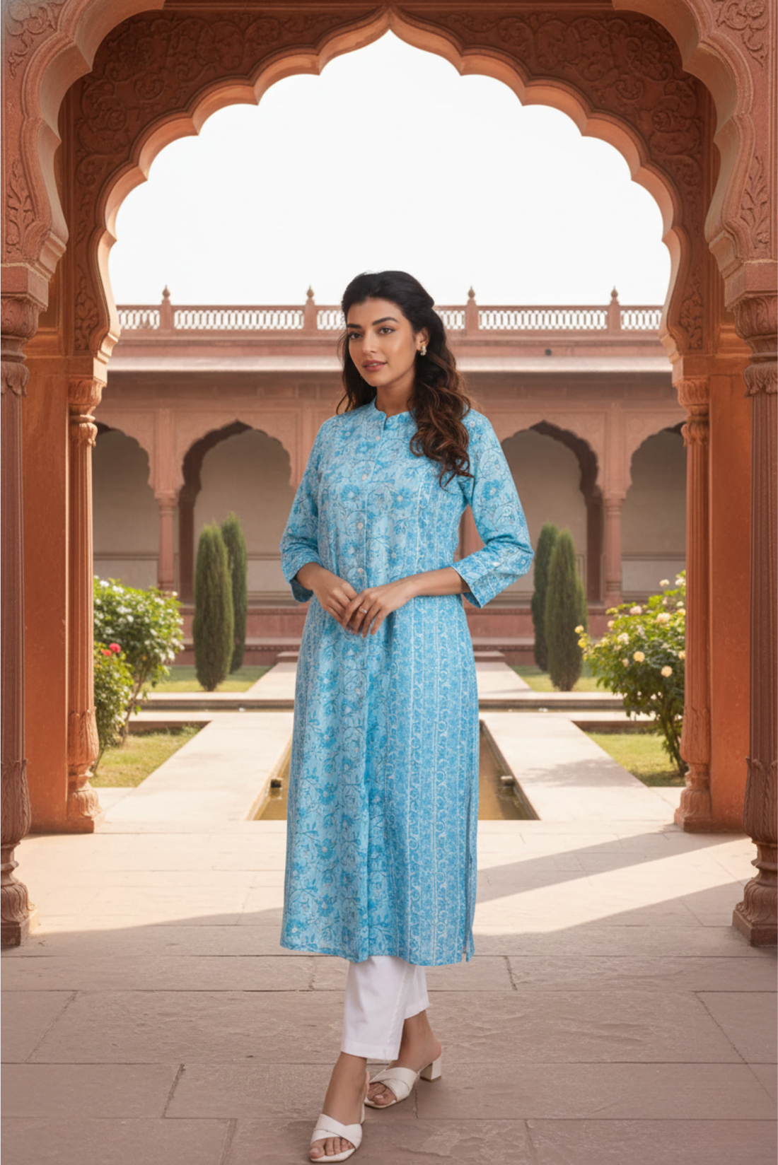 Step into elegance with our blue floral print kurta, designed for both comfort and style....