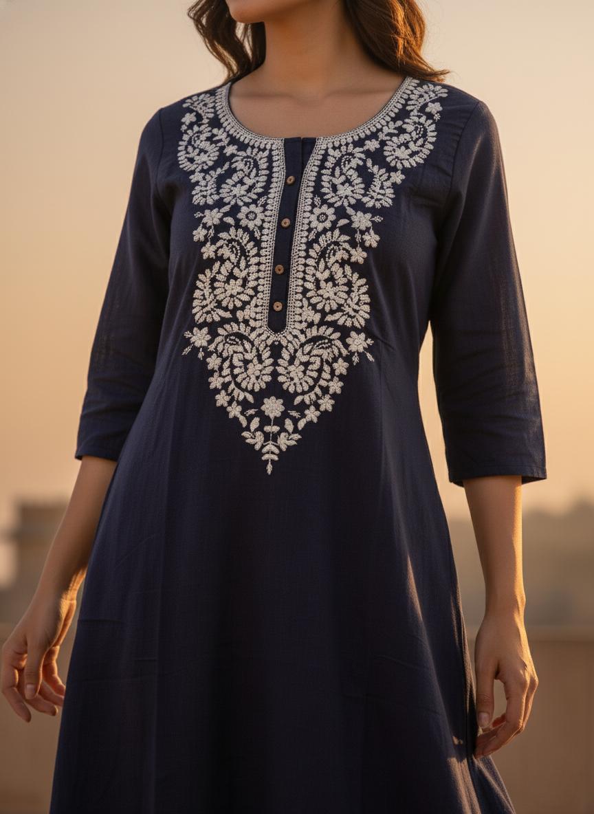 Navy Blue Embroidered Kurta