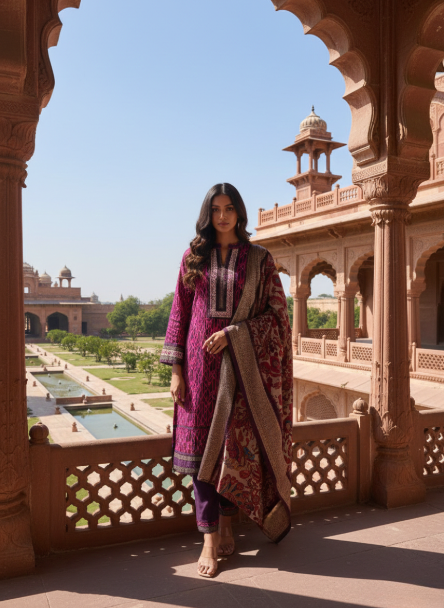 An elegant fusion of traditional charm and rich hues, this Noir Bagh Printed Suit Set...