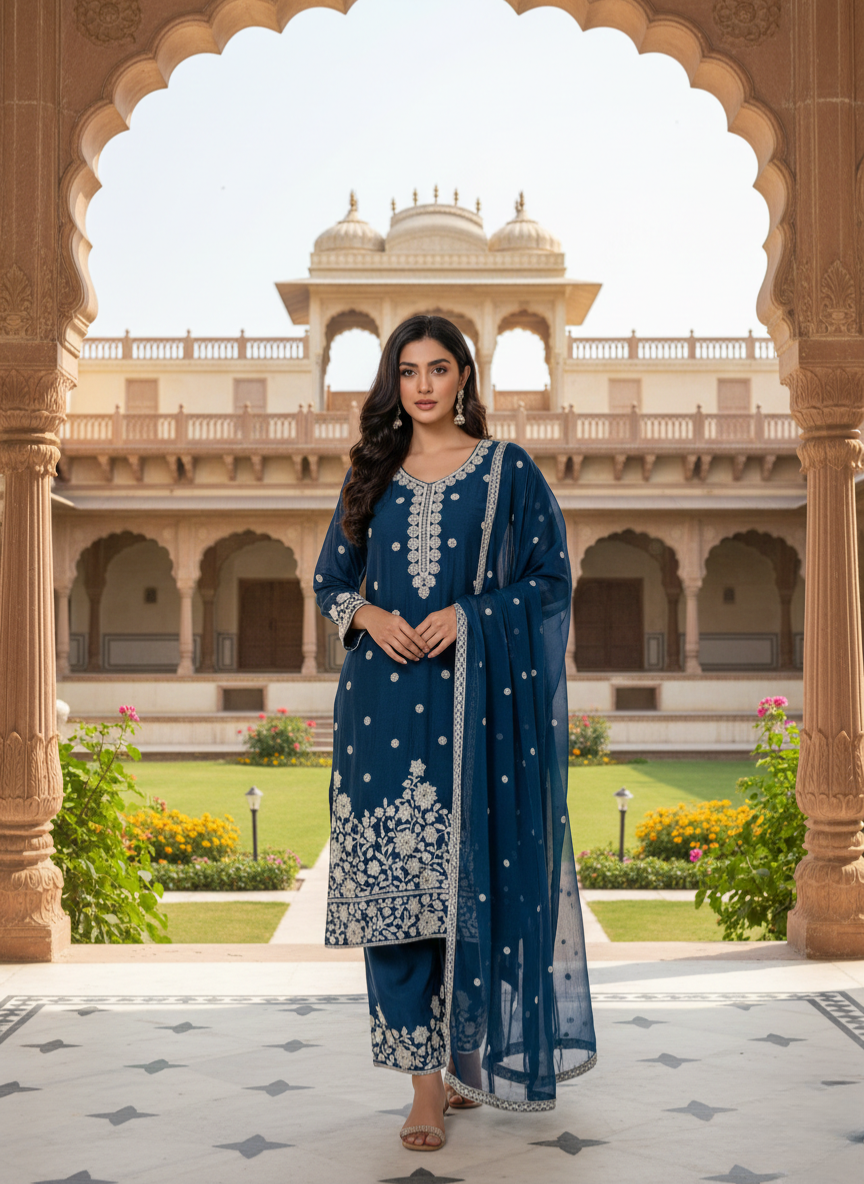 Add a touch of elegance to your ethnic wardrobe with this beautifully crafted blue floral...