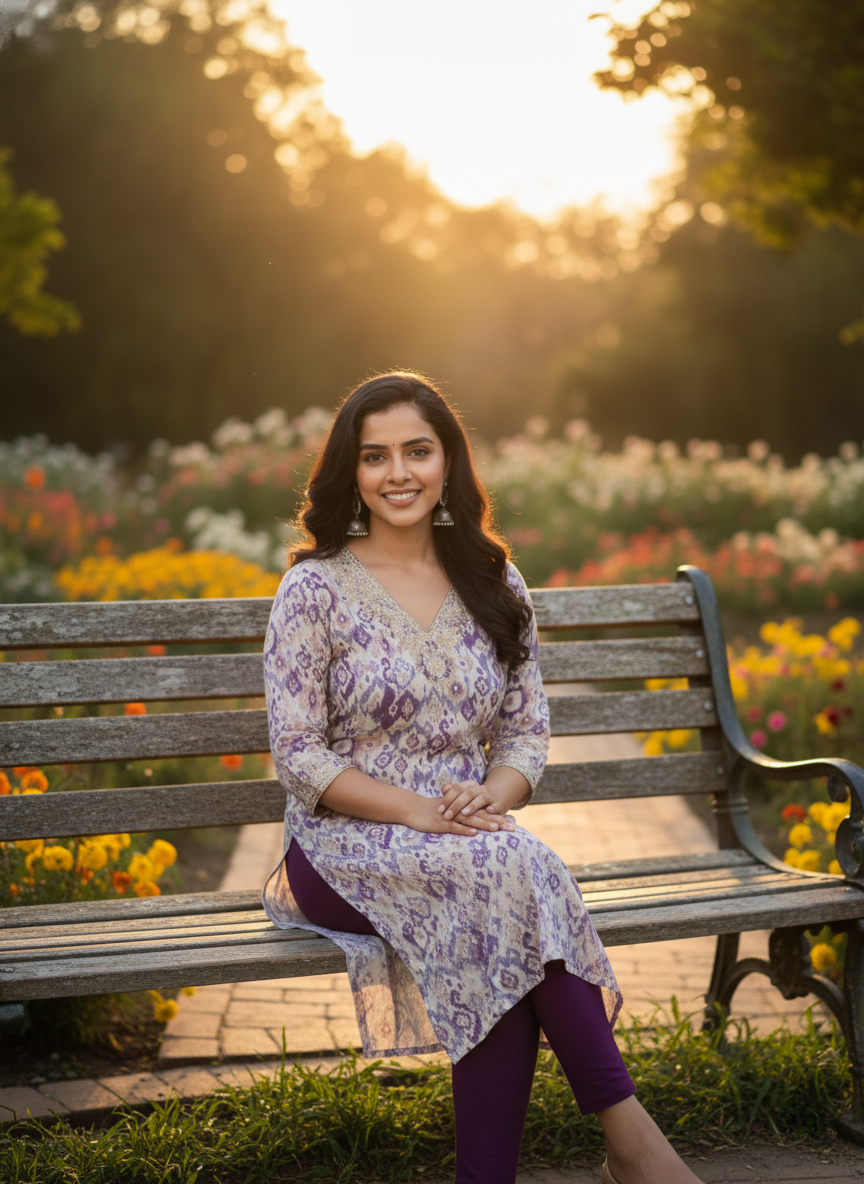 Style this kurta with white or purple leggings, oxidized jhumkas, and comfortable flats. Add a light sling bag or delicate bracelet stack for a refined, everyday ethnic look.