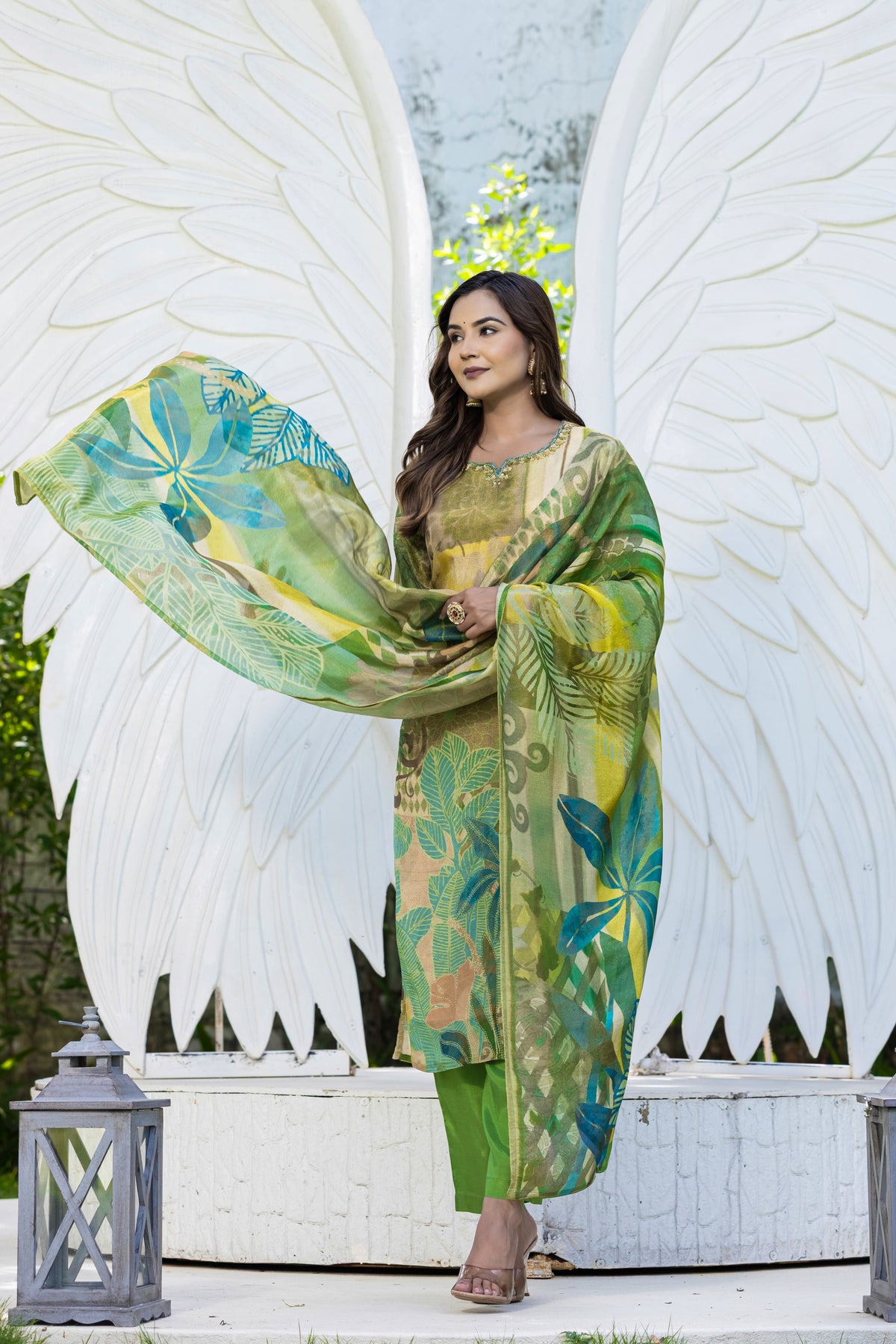 Leafy Lime Green Digital Printed Suit Set