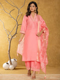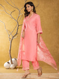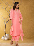Pink Silk Blend Pakistani Kurta Dupatta Set