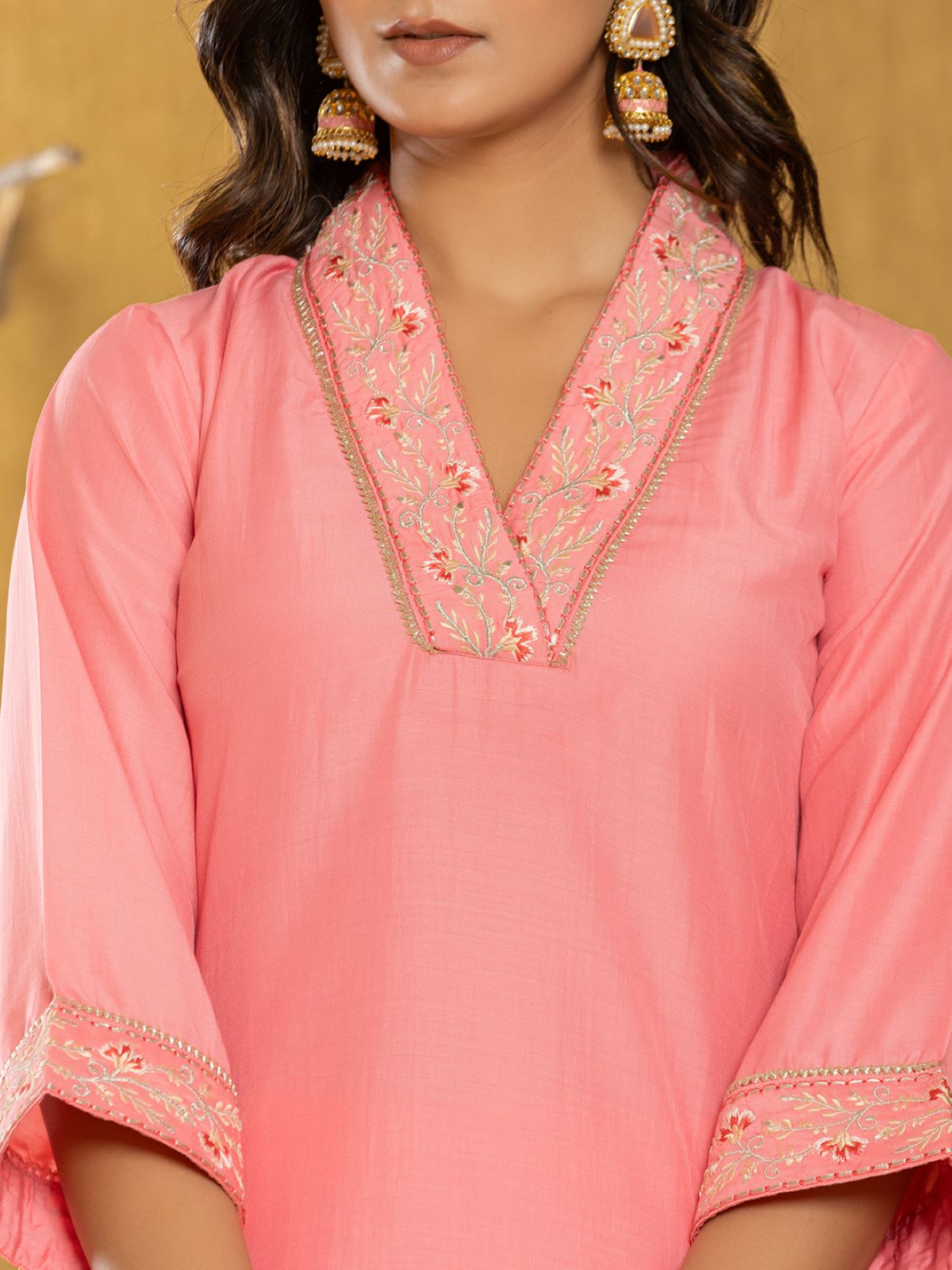 Sleeves: 3/4th sleeves with embroidered borders