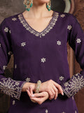 Step into timeless elegance with this deep plum embroidered suit set, crafted for women who appreciate traditional charm with a modern edge. Made from luxurious cotton-silk blend fabric, this set exudes sophistication with detailed zari and sequin embroidery. The digitally printed floral dupatta completes the look with a touch of grace.