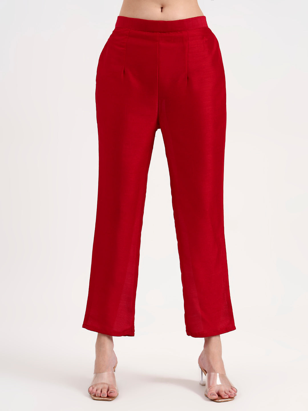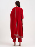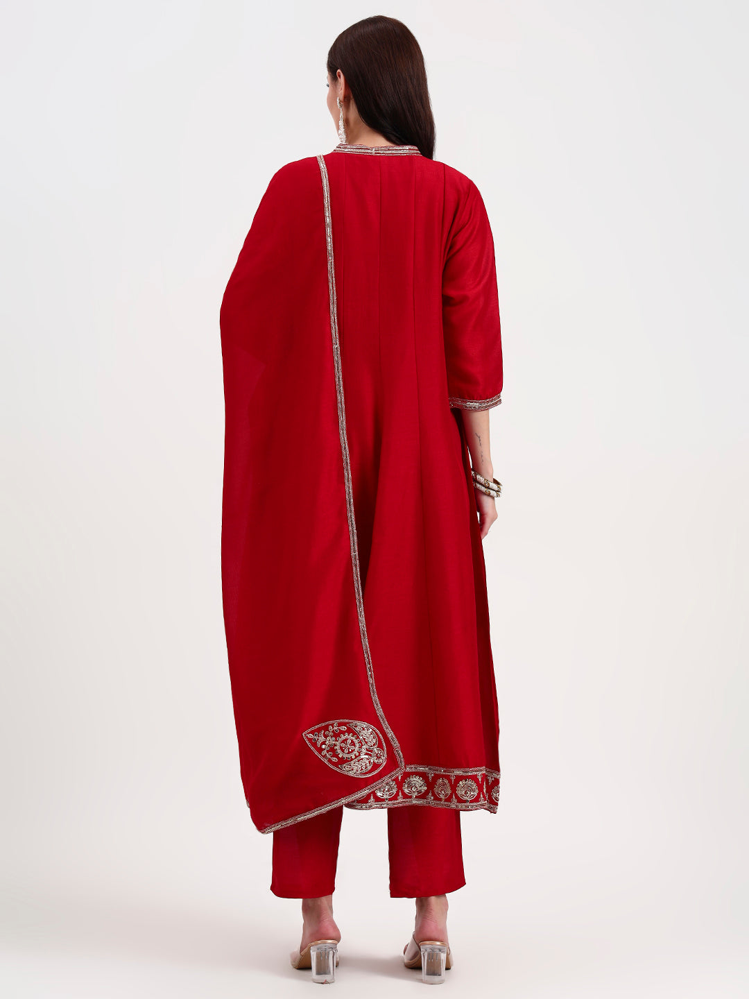 Red Vichitra Kalidaar Kurta With Pant And Dupatta