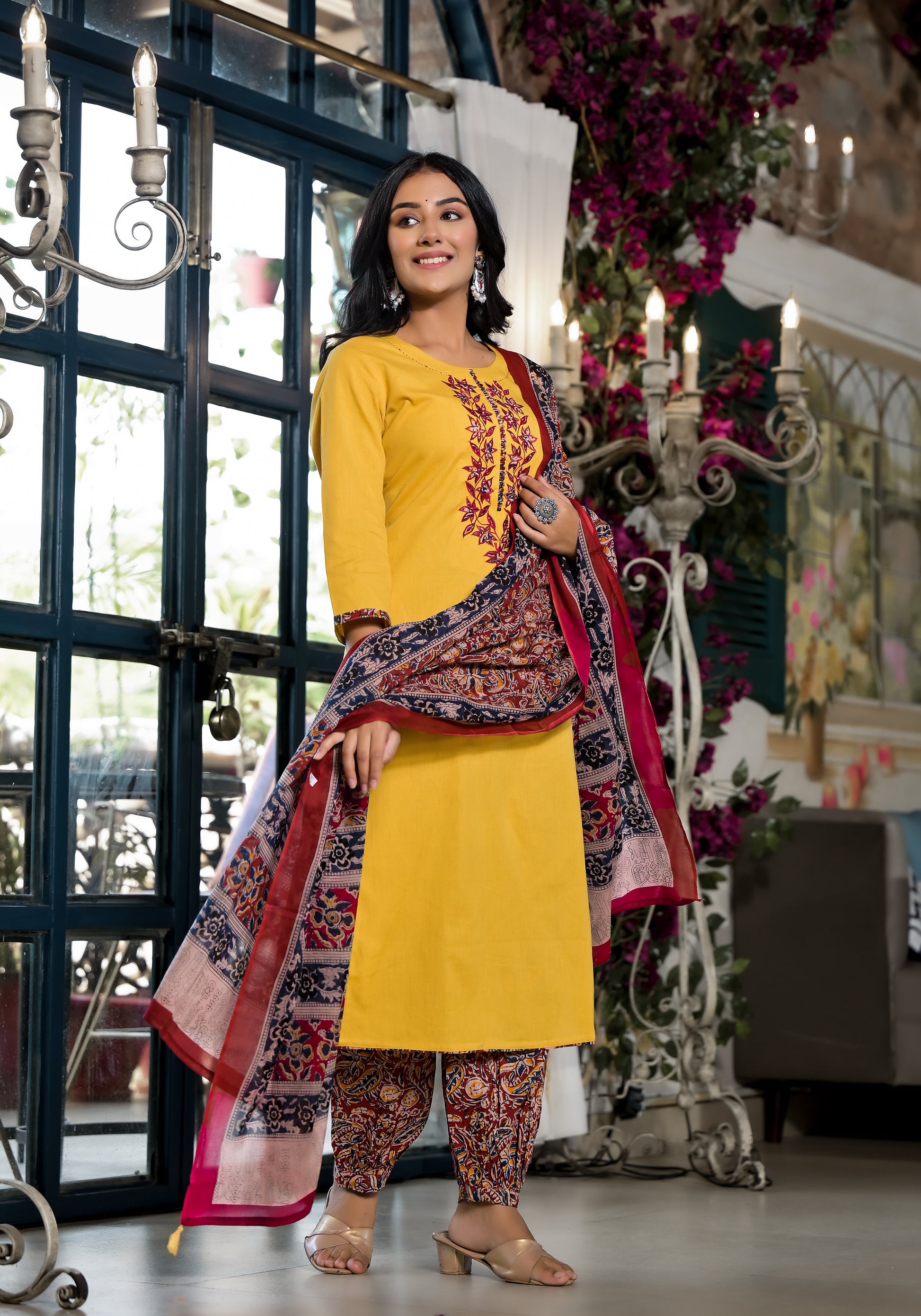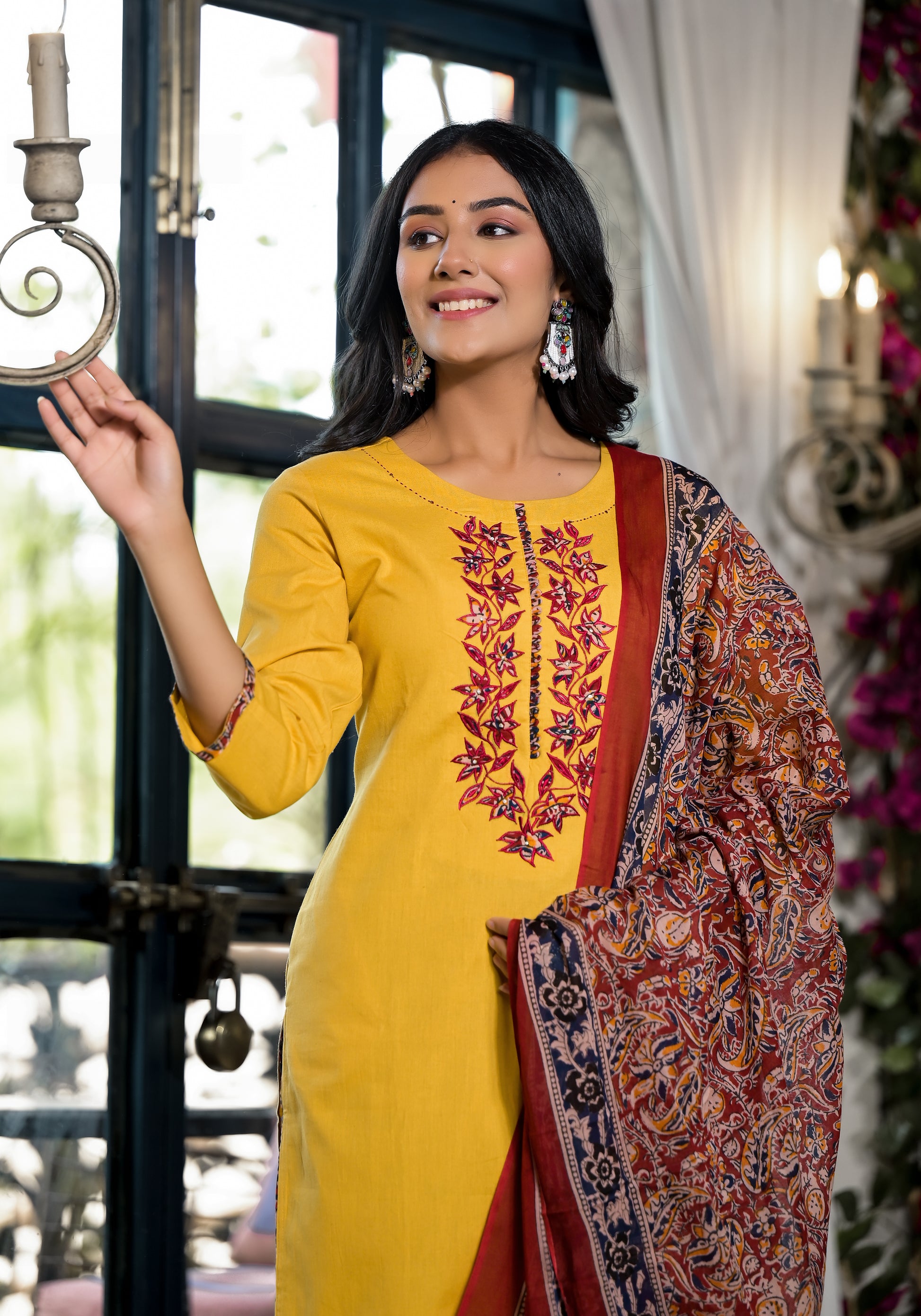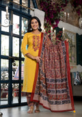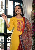 Sunlit Mustard Embroidered Kurta Set with Printed Dupatta